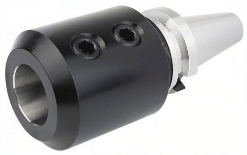 Конус по стандарту MAS403 (BT50), предназначена для зажима инструмента с цилиндрическим хвостовиком, оснащённым боковой лыской — в соответствии с DIN 1835-B и DIN 6535-HB. Внутренний диаметр зажимного отверстия — 25 мм. Конструкция включает два зажимных винта с шестигранным приводом, которые, упираясь в лыску инструмента, обеспечивают надёжную фиксацию и точное центрирование. Вылет от базовой поверхности шпинделя — 160 мм, радиальное биение не превышает 0,005 мм.