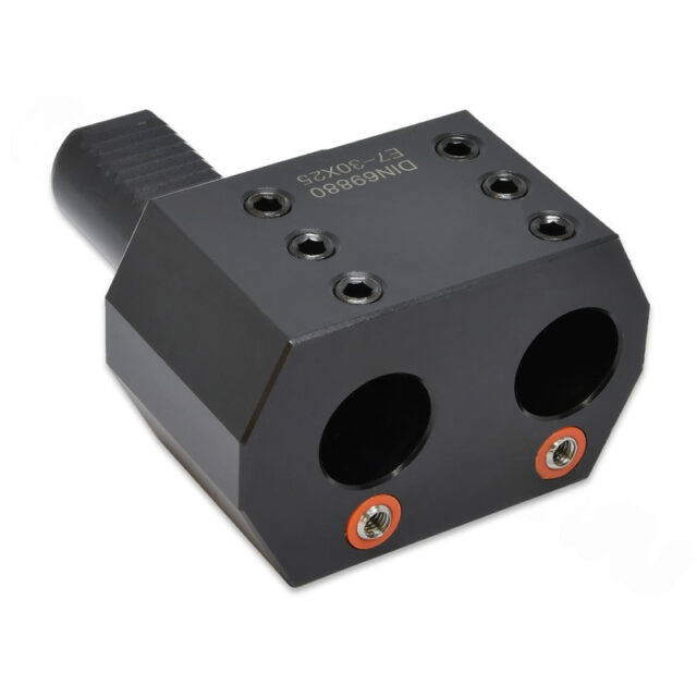 Двойной резцедержатель с цилиндрическим хвостовиком типа VDI E7 предназначен для крепления расточных резцов с хвостовиком диаметром 32 мм. Он использует хвостовик оправки VDI50. Блок VDI в основном применяется для фиксации расточных резцов и другого осевого инструмента, где требуется подача охлаждающей жидкости снизу.