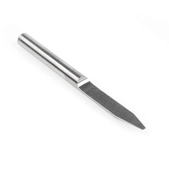 Применяется для нанесения гравировки и чистовой обработки трехмерного рельефа. Конструкция гравера: конусная рабочая часть имеет одну кромку и плоскую площадку, которая при вращении формирует плоскость. Применение: гравировка, снятие фасок, фрезеровка под изгиб композита — двухцветная плита, акрил, ПВХ, дерево, МДФ, ювелирный воск. Диаметр площадки 1мм; угол рабочей части 30°; диаметр хвостовика 3.175мм; общая длина 38мм.